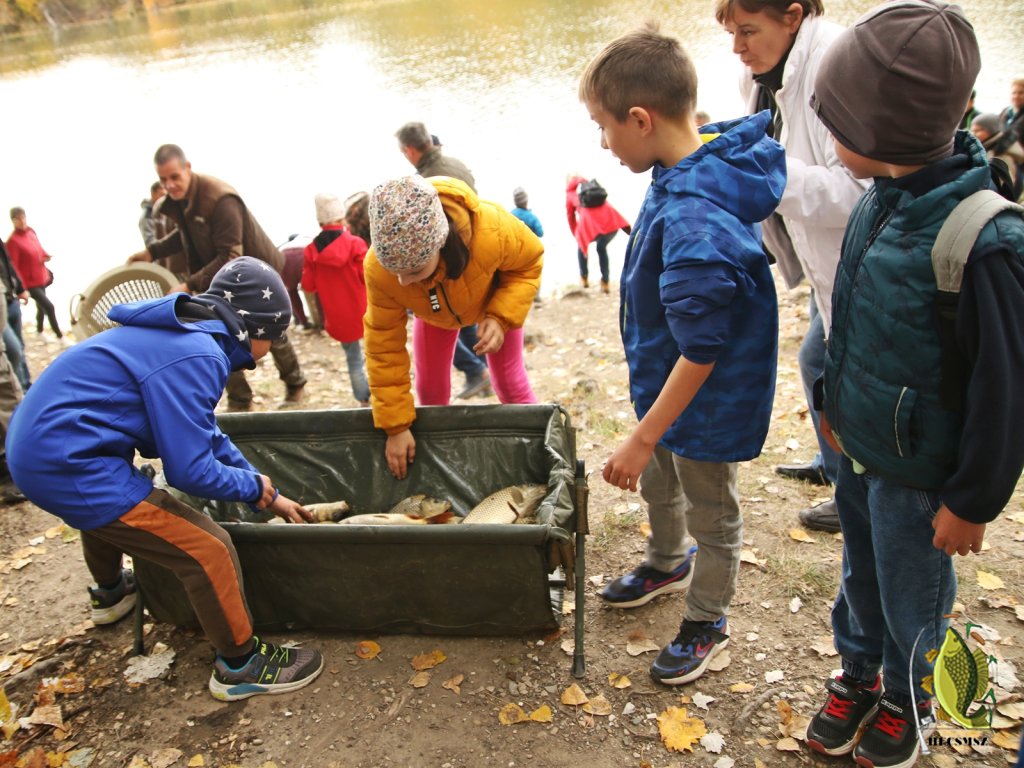 Az eredményhirdetést követően az Ifjúsági Szálló előtti partszakaszon jelölt kétnyaras pontyok telepítése történt, ahol az érdeklődő gyerekek segítségével helyeztük el új otthonukba a halacskákat