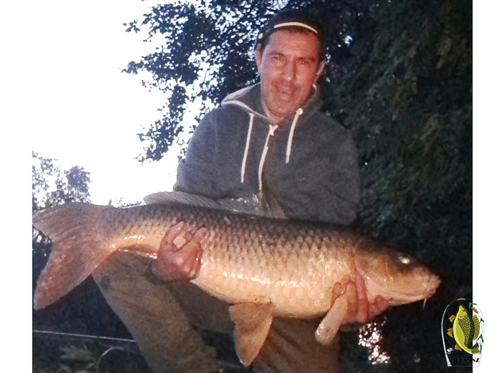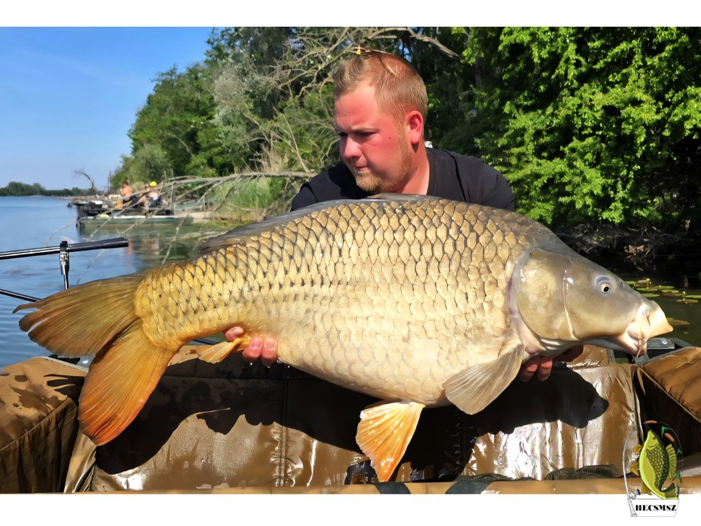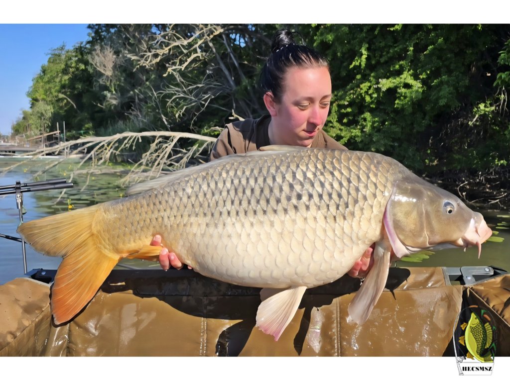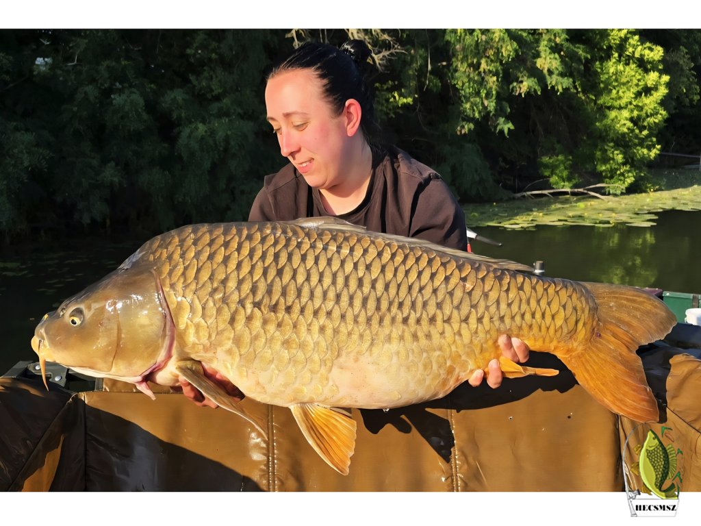 Egy délben érkezett kapásra vágtam be, a hal megállt a meder közepén majd egy percig és utána megindult, akkor éreztem hogy nagy lesz. Csónak nélkül a partról fárasztottam jó 20 percet, a végén már derékig kellett hogy a vízben álljak, hogy ne vigye bele a nádba és a tökbe. 20mm fűszeres fokhagymás bojlira csábult el.
