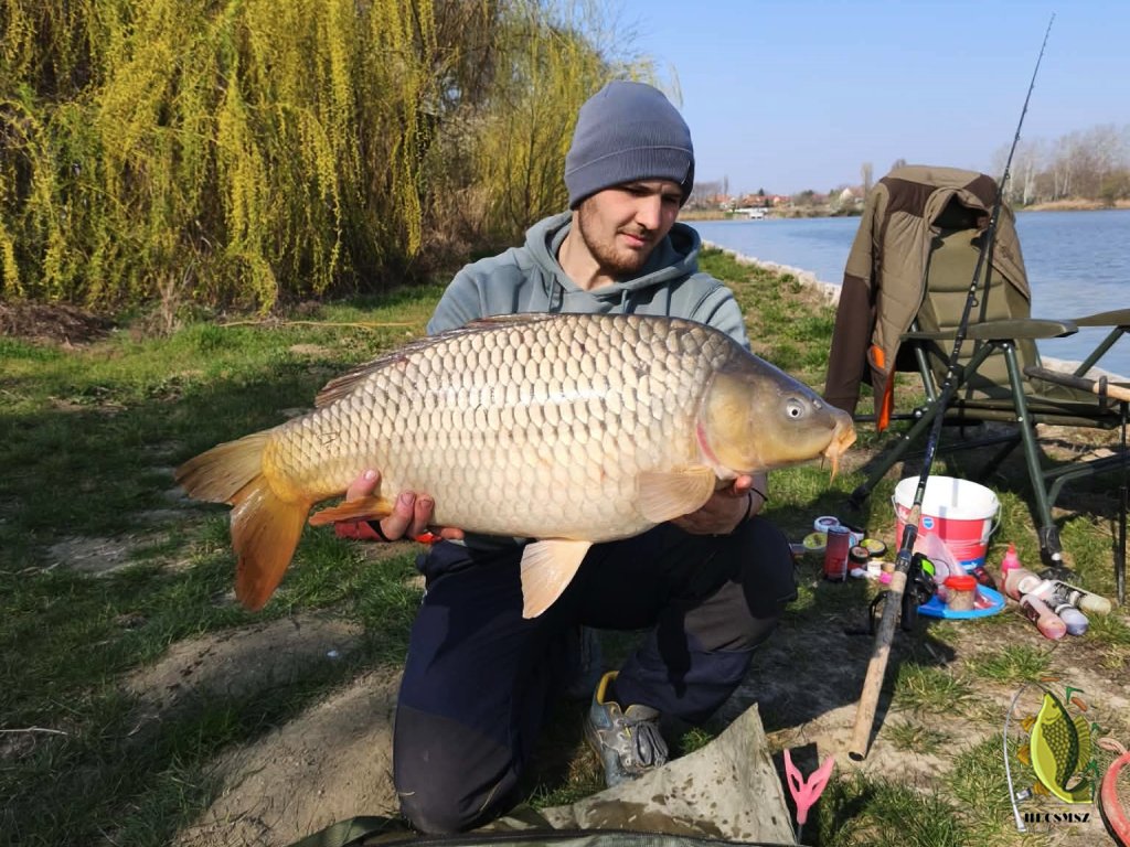 Az atkai szezont kezdtük meg ezen a napon édesapámmal. Egy pár órás, rövid horgászatra látogattunk ki, mikor a pakolásnál egy nagyon óvatos kapásra vágtam be. A fárasztás elején egy kisebb testű (kb 3 kilós) halra gyanakodtam, viszont partközelbe érve megvadult és megállíthatatlanul ment a meder felé. Jó 10 perces fárasztást követően, mikor már sikerült a halat a móló elé visszaterelni, mutatta meg magát ez az erős, egészséges, erőtől duzzadó töves.